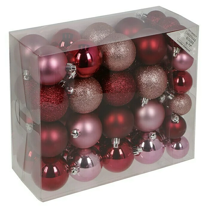 BAUHAUS Christbaumkugel-Mix Berry-Kiss Rosa, Kunststoff, Durchmesser: 4 Cm – 6 Cm, 50 Stk.