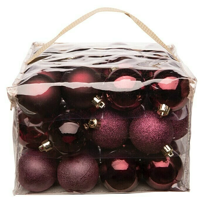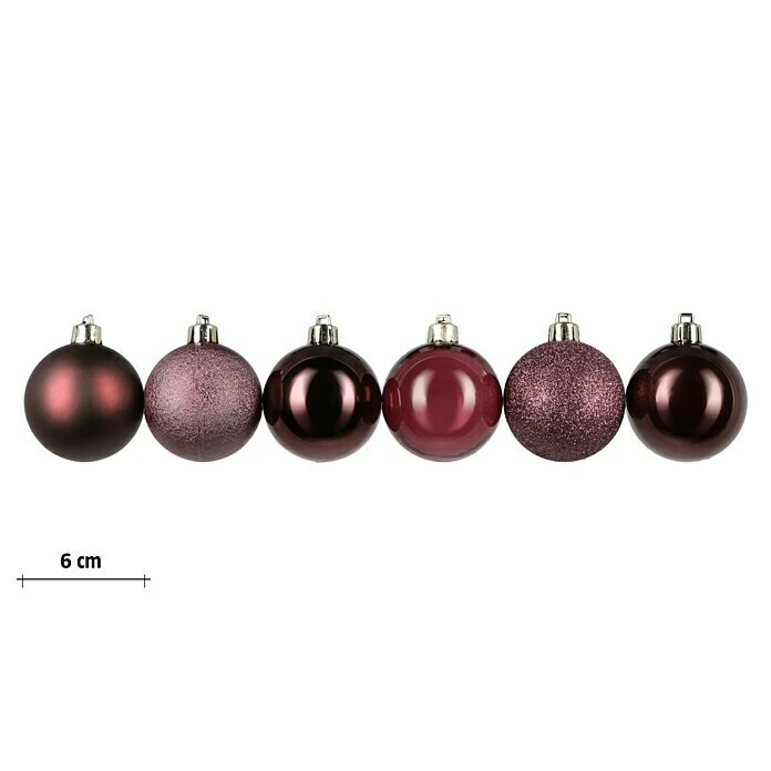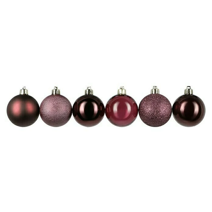 BAUHAUS Christbaumkugel-Mix Bordeaux, Kunststoff, Durchmesser: 6 Cm, 48 Stk.