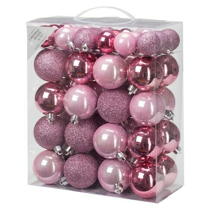 BAUHAUS Christbaumkugel-Mix Rosa, Kunststoff, Durchmesser: 4 Cm – 6 Cm, 50 Stk.