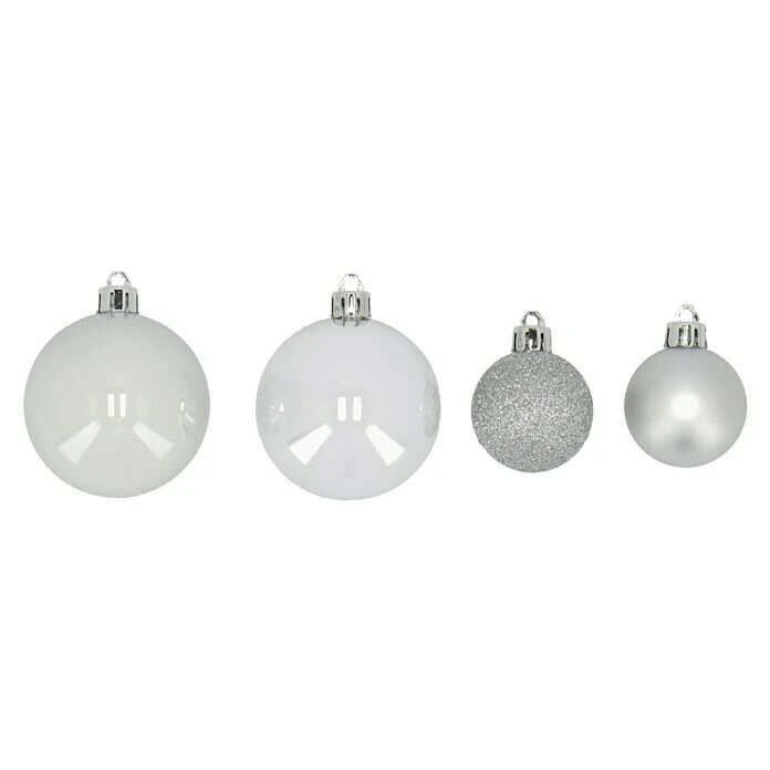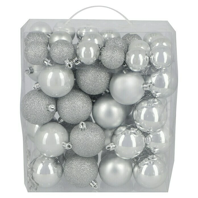 BAUHAUS Christbaumkugel-Mix Silber, Kunststoff, Durchmesser: 4 Cm – 6 Cm, 50 Stk.