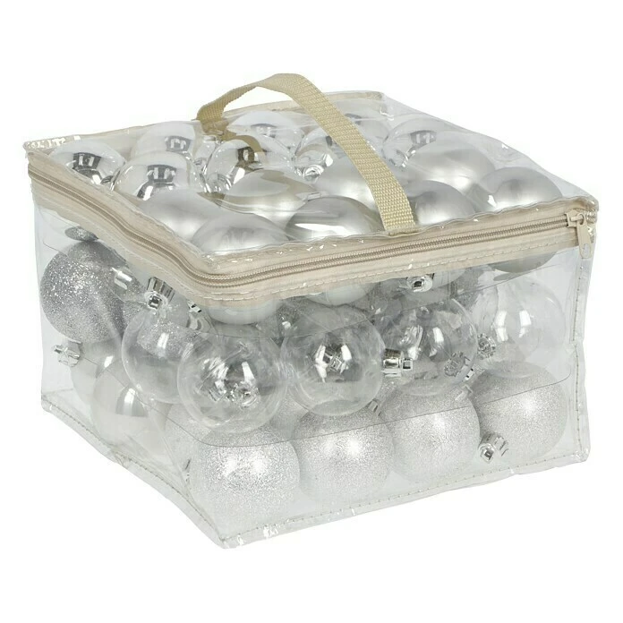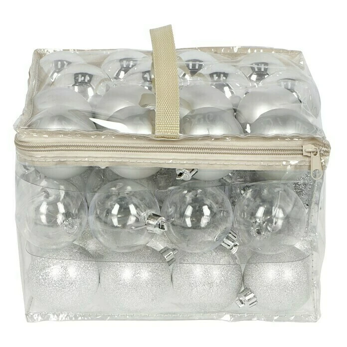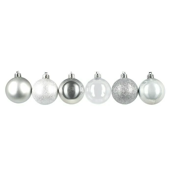 BAUHAUS Christbaumkugel-Mix Silber, Kunststoff, Durchmesser: 6 Cm, 48 Stk.