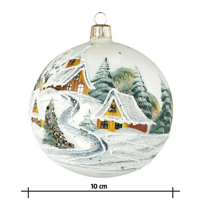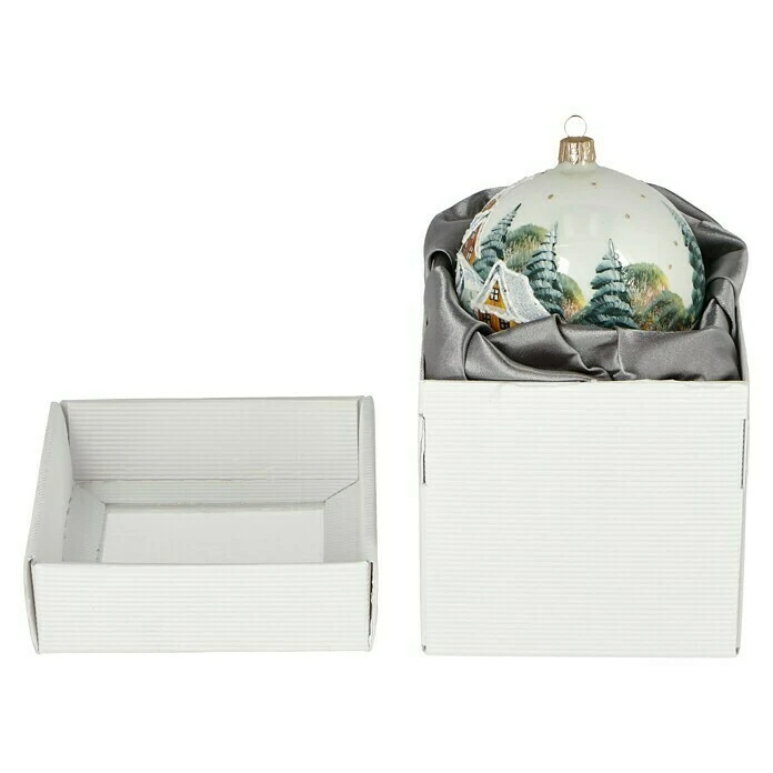 Diese Christbaumkugel dient ideal als märchenhafte Ergänzung für jede weihnachtliche Dekoration. Das liebevoll detaillierte Design dient als besonderes individuelles Highlight und sticht in der gesamten Weihnachtsbaumdekoration hervor. Die von Hand bemalte Kugel kommt in einer schlichten Geschenkbox, so dass sie auch als Geschenk festliche Freude verbreiten kann.