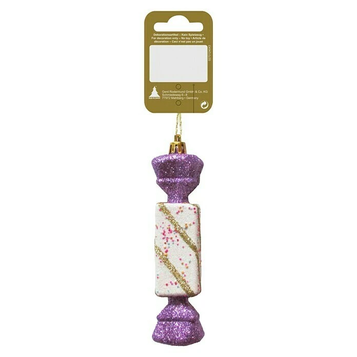 BAUHAUS Christbaumschmuck Bonbon Glitter Weiß, Kunststoff