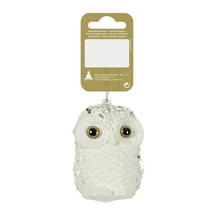 BAUHAUS Christbaumschmuck Eule Mit Pailetten Weiß, Kunststoff