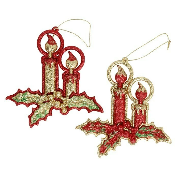 Der Christbaumschmuck in Form einer Kerze auf einem Zweig ist die perfekte Ergänzung zu jeder heimischen Weihnachtsdekoration. Die Anhänger zeigen glitzernde Kerzen mit passenden Stechpalmenblättern und goldglitzernden Akzenten. Durch dieses klassisch weihnachtliche Design kann das Dekoelement vielseitig kombiniert werden.