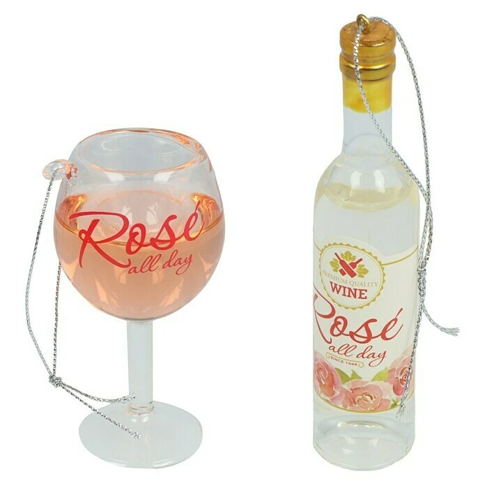 Der Christbaumschmuck „Rose all day“ in Form einer Weinflasche und eines Weinglases ist die perfekte Ergänzung zu jeder heimischen Weihnachtsdekoration. Das Ornament kann auch das ganze Jahr über zu dekorativen Zwecken genutzt werden und erzeugt eine festliche Stimmung.
