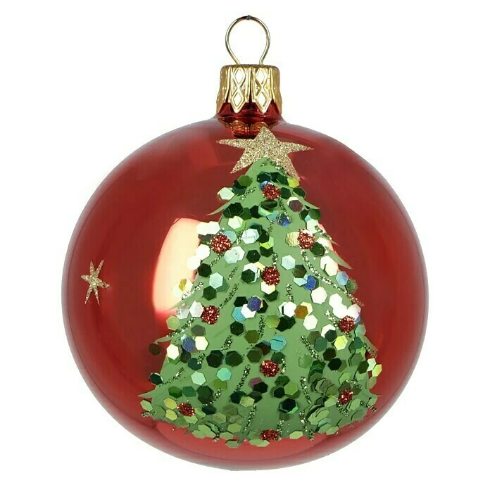 BAUHAUS Christbaumschmuck Tree Rot, Glas, Durchmesser: 7 Cm
