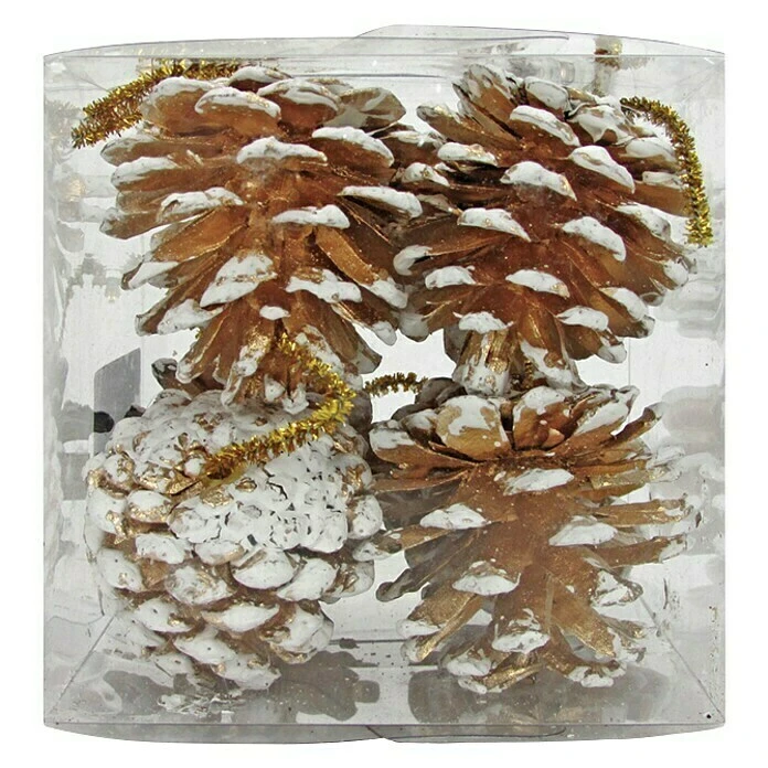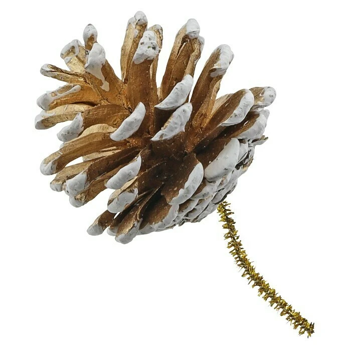 BAUHAUS Dekoartikel Zapfen Gold/Weiß Holz/Zweige, Höhe: 4 Cm