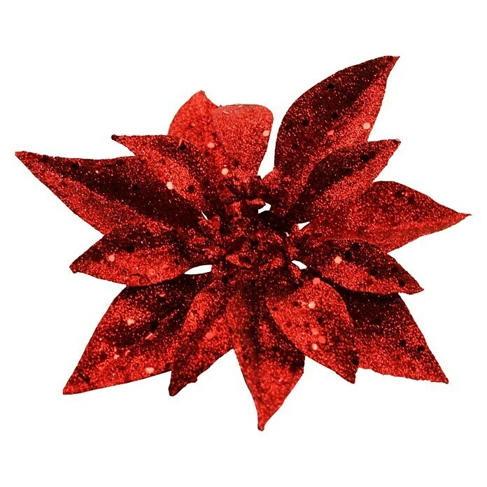 Die rote Poinsettia-Blüte macht Ihren Weihnachtsbaum zum Hingucker. Durch den Clip kann die Blüte vielseitig eingesetzt werden.