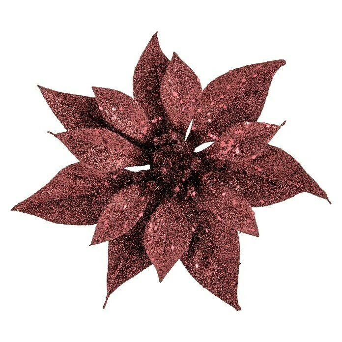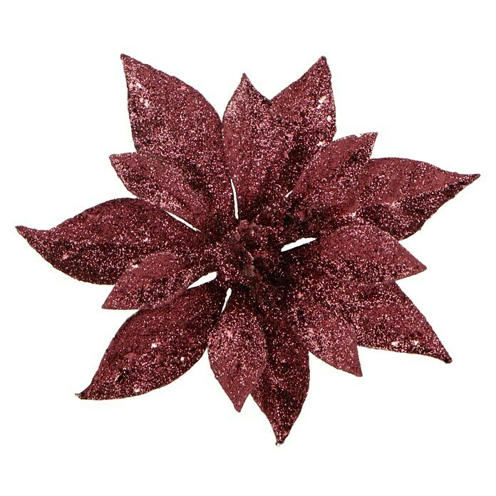 Die weihnachtliche Dekoblüte in Form eines Weihnachtssterns ist die perfekte Ergänzung für Weihnachtsgestecke, Adventskränze und vieles mehr. Mit einem Clip lässt sie sich einfach befestigen und fällt durch ihr Glitzer dem Betrachter sofort ins Auge. Man kann die Blume vielseitig kombinieren.