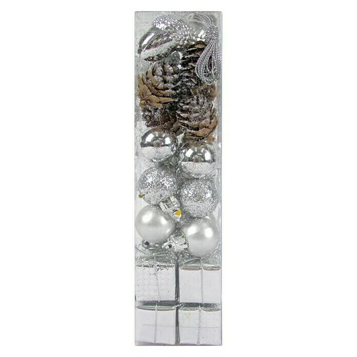 BAUHAUS Dekoelement Sortierte Deko Silber Silber, Kunststoff, 28 Stk.
