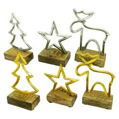 Diese Dekofigur eignet sich hervorragend als Ergänzung für die heimische Dekoration zur Winterzeit. Elegant als Hirsch, Stern oder Tannenbaum geformt, trägt das goldfarbene oder silberfarbene Aluminium in Kombination mit dem hochwertigen Mangoholzsockel zusätzlich zu einer ganz besonderen weihnachtlichen Atmosphäre bei. Durch das elegante und schlichte Erscheinungsbild bietet sie sich ideal als Dekoidee für festliche Tischdekorationen an.