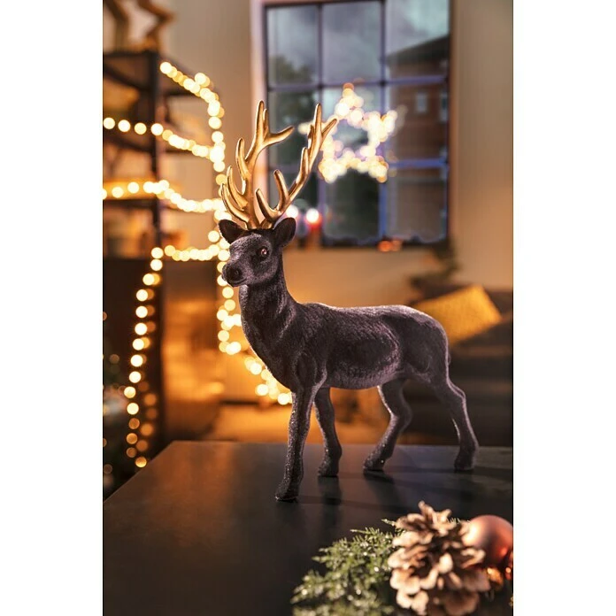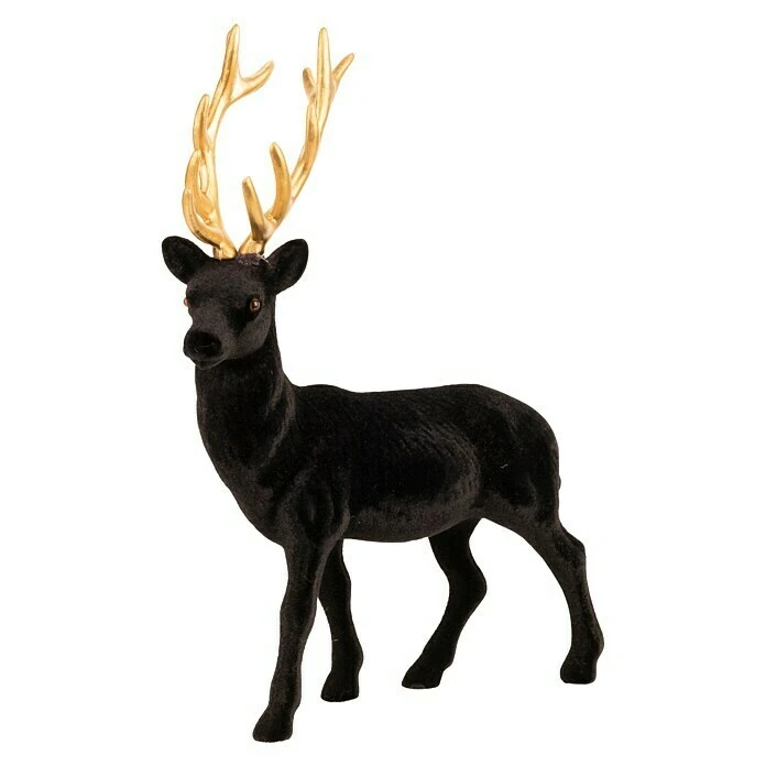 Die Dekofigur in Form eines Hirsches ist die perfekte Ergänzung zu jedem weihnachtlichen Arrangement. Durch die schlichte Farbgebung kann man die Figur vielseitig kombinieren. Der Hirsch ist mit einer Höhe von 33 cm und einem goldenen Geweih ein Blickfang.