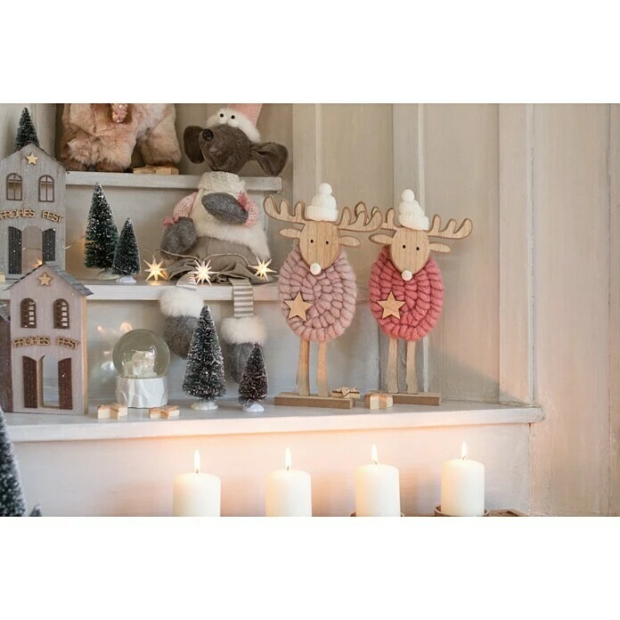 Die Dekofigur in Form eines Hirsches ist der Hingucker in jedem weihnachtlichen Arrangement. Die handgefertigte Figur ist niedlich ausgearbeitet und kann dekorativ vielseitig eingesetzt werden.