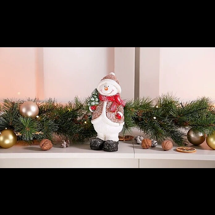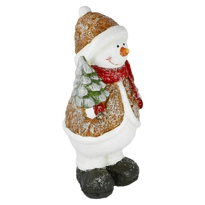 Diese weihnachtliche Dekofigur in Form eines Schneemannes mit Tannenbaum bringt winterlich, weihnachtliche Atmosphäre in Ihr Zuhause. Sie ist vielseitig kombinierbar und ein Hingucker in Ihrem festlichen Arrangement.