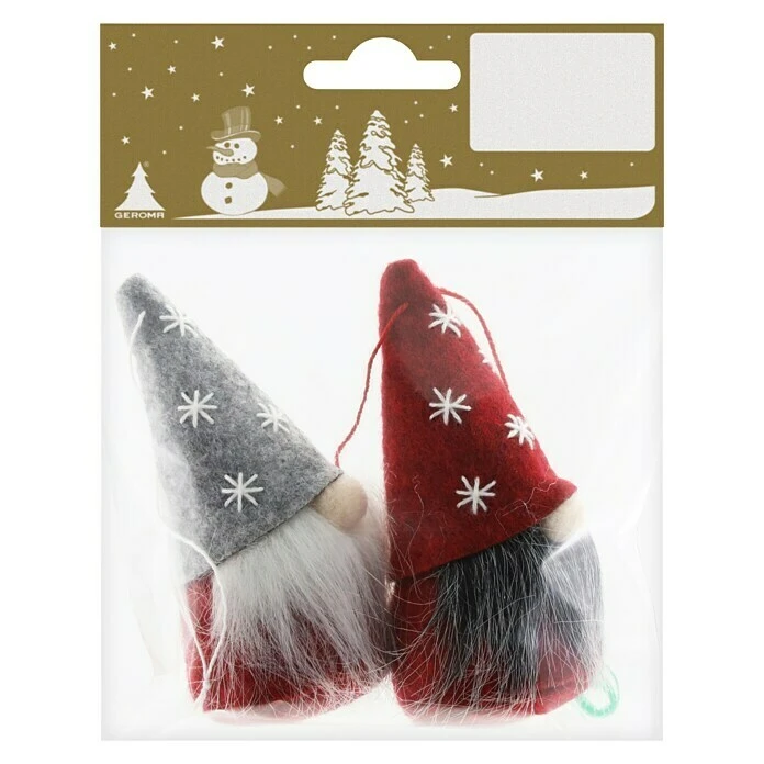 Die zwei Wichtel zum Hängen kommen in zwei verschiedenen Farben. Sie eignen sich hervorragend zum Schmücken des Weihnachtsbaums.