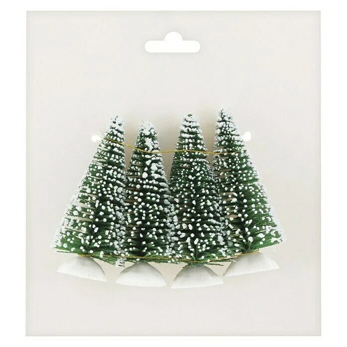 Die zwei Tannenbäume sind ein Must-have für jedes weihnachtliche Arrangement. Die Dekofiguren haben eine Höhe von 7,5 cm. Die schneebedeckten Bäume können dank dem weißen Plastikfuß vielseitig eingesetzt werden.