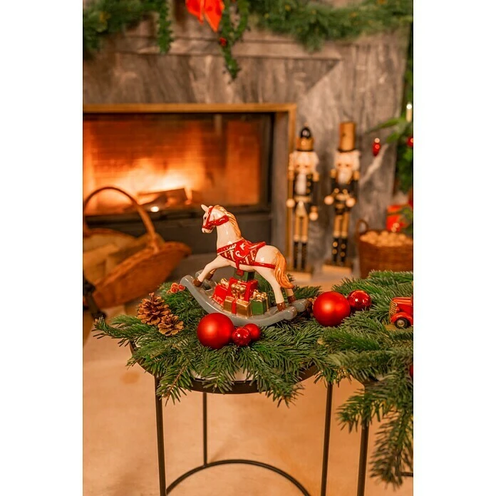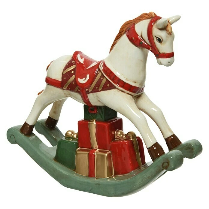 Die Dekofigur in Form eines Schaukelpferdes ist der Blickfang in jedem weihnachtlichen Arrangement. Das Schaukelpferd ist aus Dolomit hergestellt und glasiert, somit ist es langlebig und kann immer wieder in der Weihnachtszeit kombiniert werden. Durch die klassisch weihnachtliche Farbgebung kann es vielseitig eingesetzt werden.