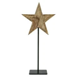 Der Deko-Aufsteller Stern überzeugt mit seinem schlichten und weihnachtlichen Schnitt. Die rustikale Holzoptik gepaart mit dem schwarzen Fuß lassen den Stern auch saisonübergreifend Räume dekorativ aufwerten. Der Stern passt in jedes Zimmer und auf jedes Möbelstück.