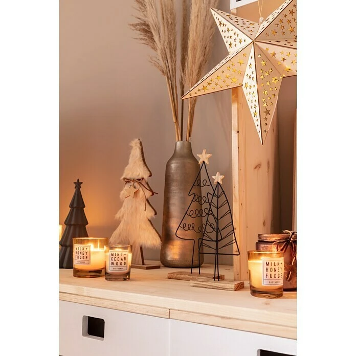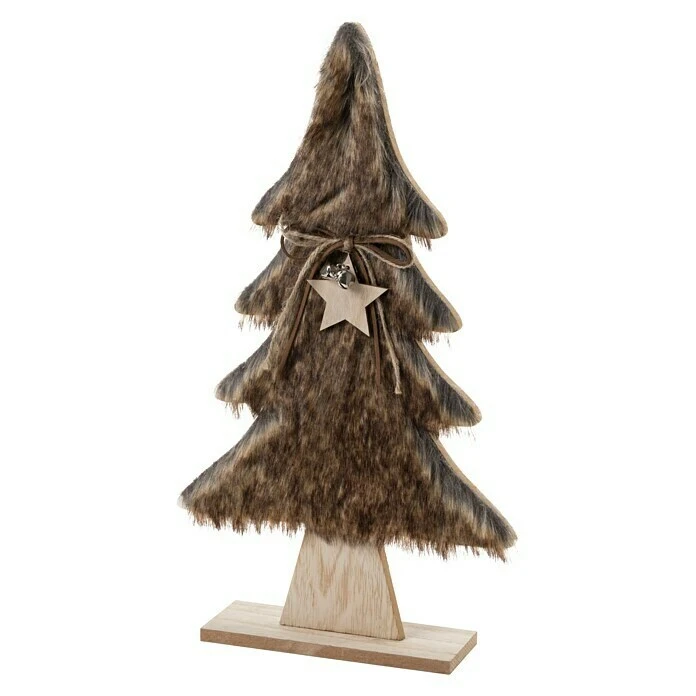 Die Dekofigur Weihnachtsbaum ist aus Holz gefertigt und ist mit einem Kunstpelz ummantelt. Der Baum verleiht Wohnräumen ein weihnachtliches Flair und passt sich durch seinen modernen und schlichten Stil jeder Einrichtung an.