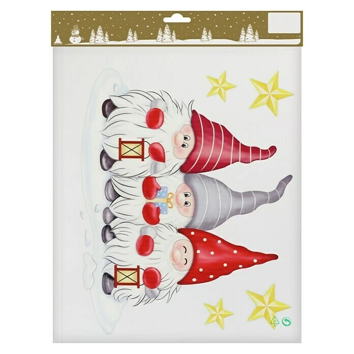Der Fenstersticker mit weihnachtlichem Wichtel-Motiv bringt weihnachtliche Stimmung in Ihr Zuhause. Der Sticker hat Maße von 29x38cm.