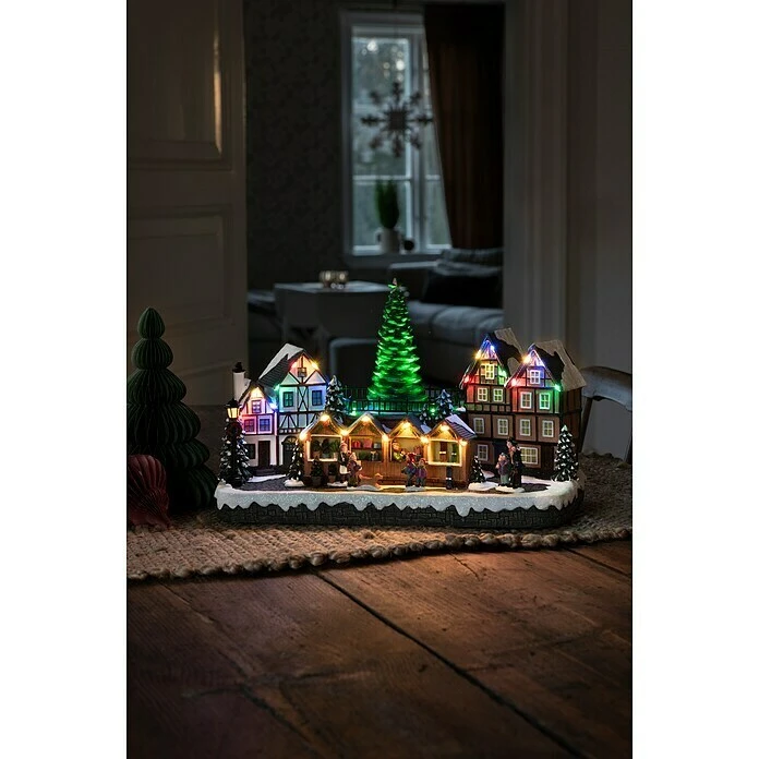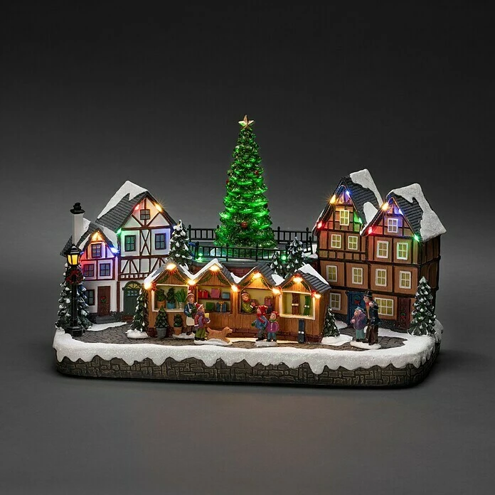 Die Konstsmide LED Szenerie Weihnachtsmarkt, mit Musik und 28 Diodenist ein echter Hingucker! Geschichten erzählen, Kerzen anzünden, gemütliches Beisammensein –¬ die Vorweihnachtszeit hat für Groß und Klein mit all ihren Figuren und Symbolen einen ganz besonderen Zauber. Diese liebevoll gestaltete Leucht-Dekoration lässt in der Fantasie eine ganz eigene kleine Weihnachtswelt entstehen. Eine wunderschöne Advents-Dekoration, an der Groß und Klein viel Freude haben werden – und das alle Jahre wieder, denn mit den Qualitätsprodukten der Firma Konstsmide setzen Sie auf Ästhetik und Langlebigkeit. Konstsmide ist seit über 40 Jahren auf die Herstellung hochwertiger Lichtdekorationen für den Innen- und Außenbereich spezialisiert und seit 1999 maßgeblicher Impulsgeber für umweltfreundliche, langlebige und sichere LED-Lösungen.