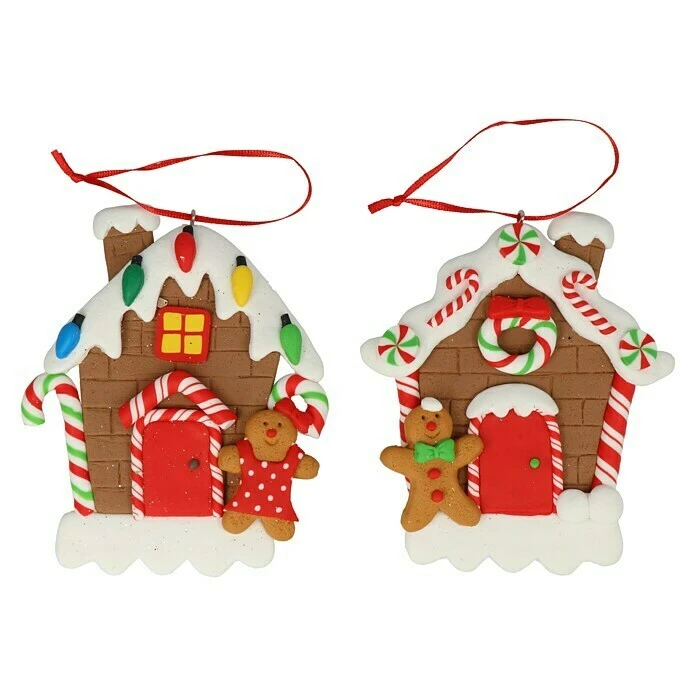 Dieses Lebkuchenhaus ist eine festliche Ergänzung für Ihr Zuhause oder Ihre Weihnachtsdekoration. In diesem aus Lehmteig gefertigten Arrangement sind ein mit Weihnachtslichtern geschmücktes Lebkuchenhaus und ein mit Pfefferminzbonbons dekoriertes Lebkuchenhaus enthalten. Jedes Haus bietet reichlich Platz zur individuellen Gestaltung!