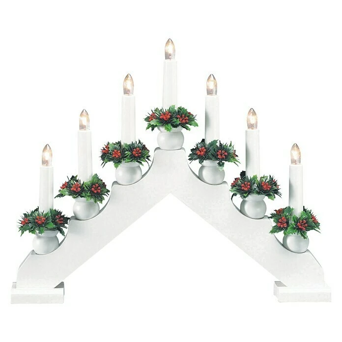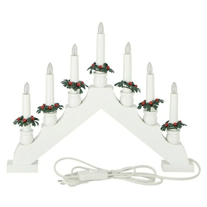 Der 7-flammige Lichtbogen Tomas von Markslöjd verzaubert in der Advents- und Weihnachtszeit viele Umgebungen mit seiner Optik und den wunderschönen Lichtakzenten. Der Lichtbogen passt sehr gut zu weihnachtlicher Dekoration und sorgt insbesondere in Fenstern für eine schöne Beleuchtung. Er verfügt über sieben E10-Fassung, in welche nach Bedarf und Belieben ein entsprechendes Leuchtmittel geschraubt werden kann. Dabei sind Lichtfarbe und Intensität an die eigenen Bedürfnisse individuell anpassbar und kann somit jeder Dekoration gerecht werden. Besonders praktisch ist die versteckte Zuleitung, die mit einem Schalter versehen ist. Mit diesem Schalter lässt sich die Leuchte leicht bedienen. Die Leuchte ist in verschiedenen Farben erhältlich.