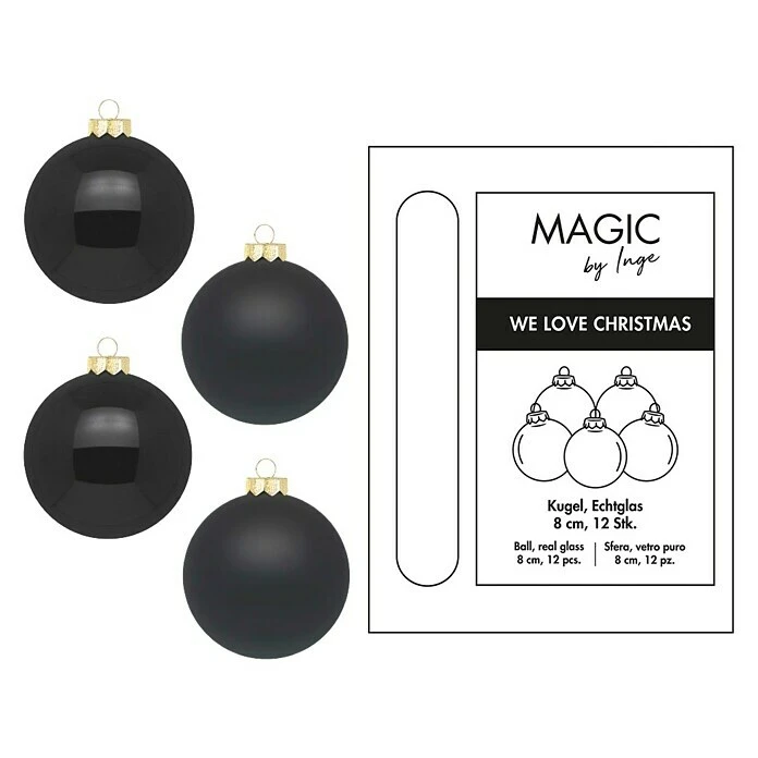 BAUHAUS Weihnachtskugeln 12 Stk., Durchmesser: 8 Cm, Ebony Black, Glas