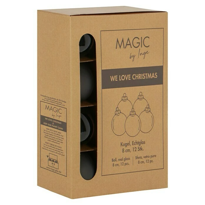 Die Christbaumkugeln im Farbton Ebony Black aus der Kollektion MAGIC by Inge bringen weihnachtliche Stimmung in Ihr Zuhause. Zu finden ist das Set bestehend aus 12 Glaskugeln mit je 8 cm in der Themenwelt Skandinavische Weihnachten.