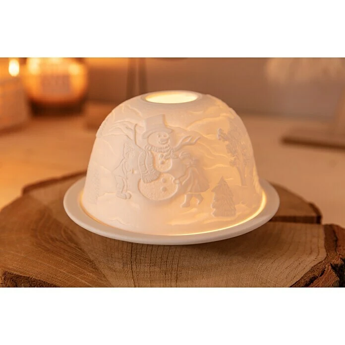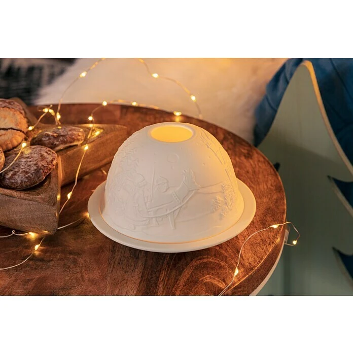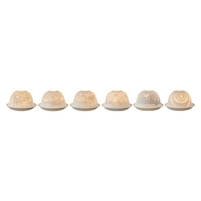 Hergestellt aus feinem Biskuit-Porzellan, zaubert dieses Windlicht eine ganz besondere Atmosphäre in den Wohnbereich. Das Oberteil des Windlichtes lässt sich abnehmen und ein Teelicht bzw. ein LED-Teelicht im Inneren platzieren. Das Licht scheint nun durch das Porzellan hindurch und lässt das Motiv dezent leuchten und füllt den Raum mit Wärme und Gemütlichkeit. Dieser Stimmungsmacher eignet sich auch hervorragend als Geschenkidee und bietet zusätzlich eine Auswahl an 6 alternativen Designs.