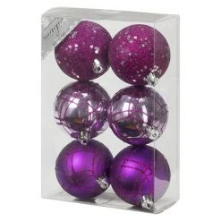 BAUHAUS Christbaumkugel-Mix Lila, Kunststoff, Durchmesser: 8 Cm, 6 Stk.