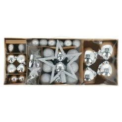 BAUHAUS Christbaumkugel-Mix Silber, Kunststoff, Durchmesser: 4 Cm – 6 Cm, 50 Stk.